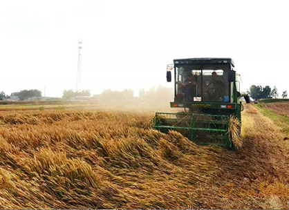 • 拖拉機和收割機在農場收大米